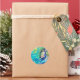 PEGATINA REDONDA PAN JUGANDO FLUTE Y CERVEZA EN TIERRA VERDE