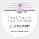 Agradezca a sus clientes por su compra y anuncie su panadería, bistro, café, restaurante, negocio de catering, panadería casera, pequeño negocio o productos del mercado de agricultores con estas pegatinas totalmente personalizables. Úselas en productos horneados en cajas, bolsas de compras, contenedores para llevar, para anunciar la gran apertura de su tienda, y más. Cambie las áreas de texto para satisfacer sus necesidades.