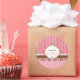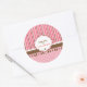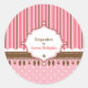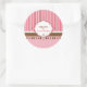 Un Pegatina redondo que añade un toque de dulzura a sus productos caseros o minoristas. Este pegatina original presenta una combinación de rayas rosas, puntos de polka blanco y una cinta marrón, creando una etiqueta visualmente atractiva para los productos horneados.