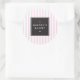 Las rayas rosas y blancas de moda aportan una personalidad retro a estos pegatinas personalizados. Este diseño recuerda a los helados y a las tiendas de dulces de ayer y le dará un toque nostálgico a su marca de negocios. Creado para panaderías, decoradores de pasteles, empresas de restauración, dulces, productos de elaboración casera o cualquier negocio que busque un pegatina elegante. Tu nombre está simplemente diseñado en un cuadrado negro. Perfecto para sellar bolsas y cajas de oro, o para personalizar los suministros de oficina. Diseño © 1201AM Design Studio