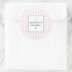 Las rayas rosas y blancas de moda aportan una personalidad retro a estos pegatinas personalizados. Este diseño recuerda a los helados y a las tiendas de dulces de ayer y le dará un toque nostálgico a su marca de negocios. Creado para panaderías, decoradores de pasteles, empresas de restauración, dulces, productos de elaboración casera o cualquier negocio que busque un pegatina elegante. Su nombre está simplemente diseñado en un cuadrado blanco. Perfecto para sellar bolsas y cajas de oro, o para personalizar los suministros de oficina. Diseño © 1201AM Design Studio