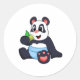 Pegatina Redonda Panda como bebé con bambú