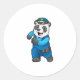 Pegatina Redonda Panda como oficial de policía con gorra de policía