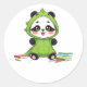 Pegatina Redonda Panda con disfraz de dinosaurio