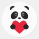 Pegatina Redonda Panda del corazón rojo