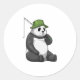 Pegatina Redonda Panda en la pesca con barra de pesca