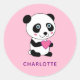 Pegatina Redonda Panda lindo con un corazón rosado + nombre