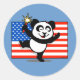 Pegatina Redonda Panda Patriótico Con Bandera Americana