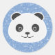Ilustracion de un lindo panda sobre un fondo azul purpurina