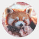 Pegatina Redonda Panda Rojo Entre Flores De Cerezo
