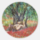 PEGATINA REDONDA PANO, ÁRBOL DE OLIVA Y CAMPOS DE POBRE