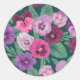 Pegatina Redonda Pansitas coloridas sobre azul verdoso oscuro