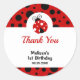 Este lindo pegatina fiesta de cumpleaños presenta una tipografía adorable y moderna sobre un fondo de polka negro y rojo. Muestra a tus invitados cuánto aprecias su presencia y haz que la celebración sea aún más especial con este pegatina de agradecimiento imprimible.