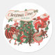 Pegatina Redonda Papá Noel de Navidad y niños bailando