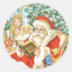 Pegatina Redonda Papá Noel leyendo la Biblia en la víspera de los N