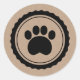 Pegatina con una huella de pata negra en una imagen de papel de kraft marrón.