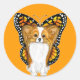 Este Perro Papillon lleva un disfraz - Gran naranja, alas amarillas, negras y blancas y un conjunto de pequeñas antenas - ¡es una mariposa monarca!