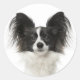 Pegatina Redonda Papillon Perro de Cachorro Blanco y Negro - Cachor