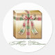 Pegatina Redonda Paquete de oro verde rosado para navidades con cin
