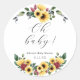 Pegatina redonda para baby shower con follaje de g