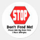 Pegatina Redonda ¡Parada! ¡No me alimente! Tengo alergias
