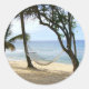 Pegatina Redonda Paraíso tropical Playa arena dorada Palm cielo