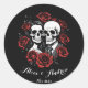 Pegatina Redonda Pare de cráneos gótico con rosas nombre personaliz