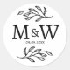 Pegatina Redonda Pareja boda Monograma Fecha Elegante Botánico