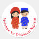 Pegatina Redonda Pareja Boda tradicional vietnamita Ao Dai