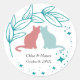 Es una pareja de gatos y un Pegatina redondo clásico de vegetación única. La combinación de corazones, tipografía y gradación purpurina es hermosa. Puede insertar nombres y fecha. Será un tema único para un día especial llamado boda. Cómpralo ahora.