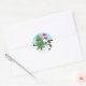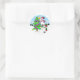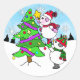 Pegatina Redonda Pareja de Snowman poniendo estrella en el árbol de