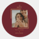 Pegatina Redonda Pareja moderna de foto monograma de Borgoña