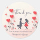 Pegatina Redonda Pareja romántica Silhouette corazones rojos boda