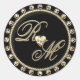 Pegatina Redonda Parejas personalizadas Monograma Oro Negro