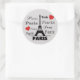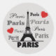 Ilustracion de diseño de textos en París con la Torre Eiffel y decoración de corazones rojos. Es posible cambiar el color de fondo y añadir uno diferente al diseño con su elección.