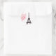 Pegatina Redonda Paris Eiffel Tower Cherry Blossom Watercolor