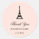 Estos elegantes pegatinas tienen un fondo rosa y una elegante imagen en negro de la Torre Eiffel. Una elección de moda para cualquier boda temático francés o parisino. Los pegatinas como se muestra dicen "Gracias" más los nombres de la novia y el novio y la fecha de boda, pero puedes personalizar fácilmente usando la plantilla.
