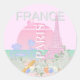 Pegatina Redonda París, Francia, Viajes, Preppy, Pastel, Rosa