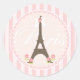 El diseño de un bebé es encantador y muy jovial, con una torre Eiffel marrón y una cinta rosa en la parte superior. Flores de color rosa dulce junto a la base de las torres, así como rayas rosas y otros adornos delicados.