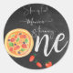 Pegatina Redonda Parte de diversión, primer cumpleaños de pizza