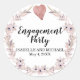 combinación de bonito de un corazón de acuarela neutra rosa y floral. Romántico y moderno. Muy de moda. La parte de compromiso está escrita con una letra de guión, los nombres de la pareja comprometida y la fecha de fiesta están debajo. El corazón de las acuarelas está en la parte superior del pegatina.