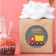 Las bonitas y coloridas etiquetas de la fiesta de la construcción para decorar los favores de la fiesta y las bolsas de oro. Cuenta con un lindo niño constructor en un gorra de seguridad y un chaleco naranja conduciendo un camión de basura rojo. El diseño se trata con un efecto de sombra que agrega una ventana emergente al diseño. Un patrón de rayas inclinadas amarillas y negras en el fondo que se encuentra en zonas de construcción y barreras. ¡Genial para los chicos de cumpleaños que aman los vehículos de construcción y los juguetes de camiones! Personalice fácilmente con mensaje fiesta.