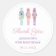 Gracias pegatinas por cualquier evento (mostrado aquí para una fiesta de cumpleaños pero todos los campos de texto son personalizable). El diseño presenta mis ilustraciones de soldados de madera de Nutcracker pastel, pintados originalmente en acuarela, antes de ser escaneados en forma digital.