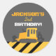 Pegatinas de la fiesta de cumpleaños del personalizable de los camiones de niños de la construcción, gris y amarillo.