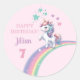 Pegatina Redonda Partido de Cumpleaños Mágico de Unicornio