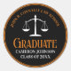 Este moderno pegatina del partido de graduación de la escuela de derecho negro y naranja presenta tipografía elegante para una clase de graduado en 2025. Personalizar con tu año de graduación bajo la balanza blanca de la justicia para grandes abogados o pegatinas.