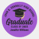 Este moderno pegatina de la fiesta de graduación de personalizados morados y negros presenta una tipografía elegante de su nombre de instituto o universidad para la clase de 2025. Personalizar con tu año de graduación bajo la moda manuscrita y gorra de grado para grandes pegatinas graduados personalizados.