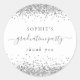 Pegatina Redonda Partido de Graduación Purpurina de Plata Gracias