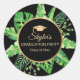 Pegatina de una fiesta de graduación con temática tropical. Ideal para etiquetar los favores de los partidos o sellar los sobres. Por favor, tenga en cuenta que los detalles del Relieve metalizado dorado se simulan.