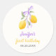Pegatina Redonda Partido del Primer Cumpleaños de Lemon Purple Bow